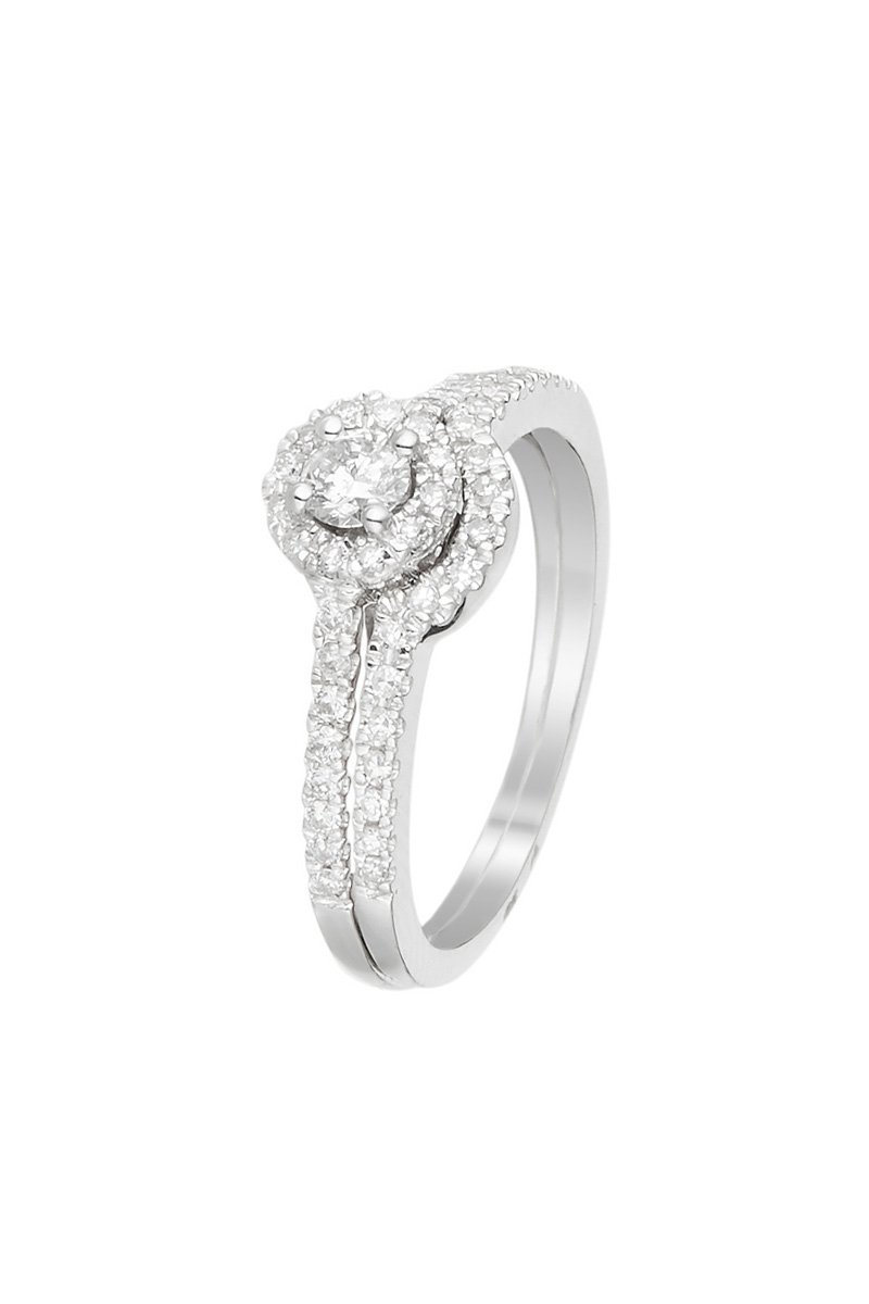 Matière : or blanc 375/1000, diamants 0,34 carat/61 et solitaire 0,17 carat/1