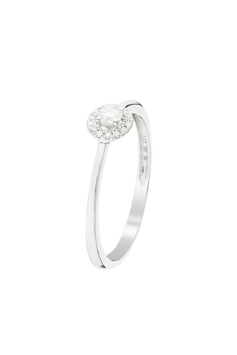 Matière : or blanc 375/1000, solitaire 0,1 carat/1 et diamants 0,05 carat/14