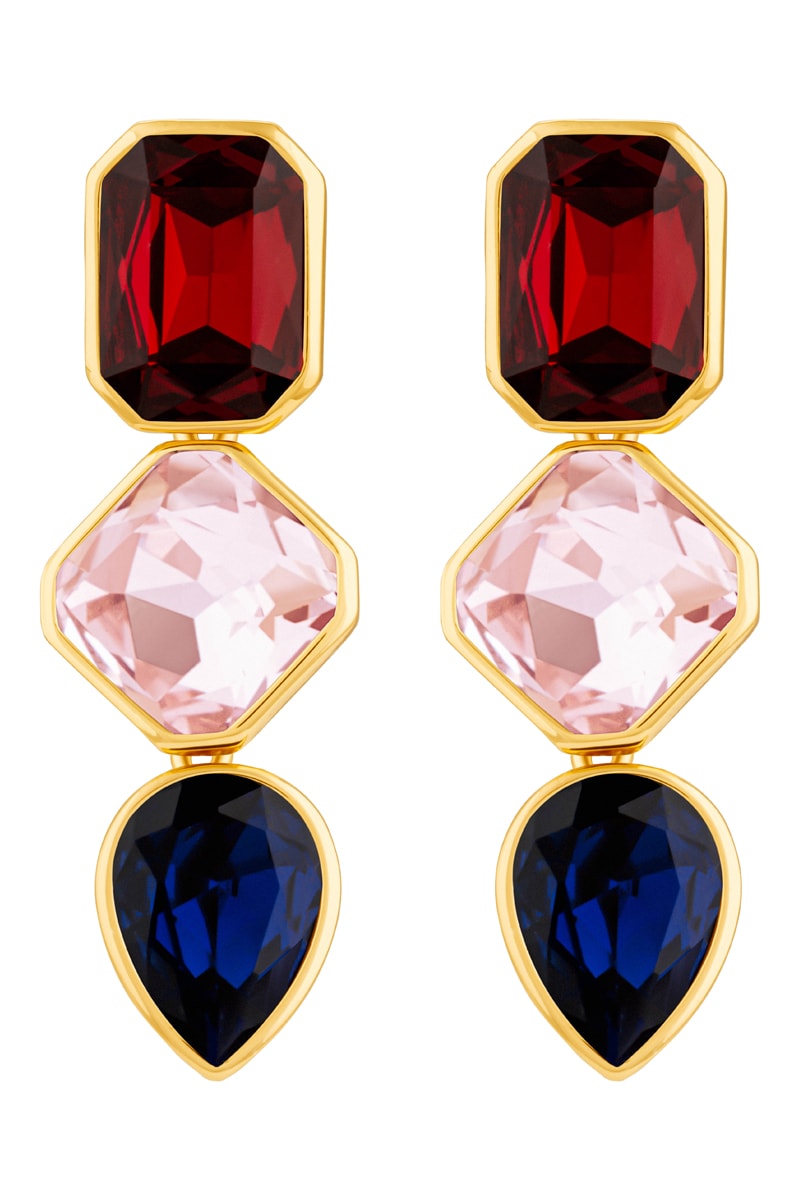 Boucles d’oreilles pendantes serties de cristaux.