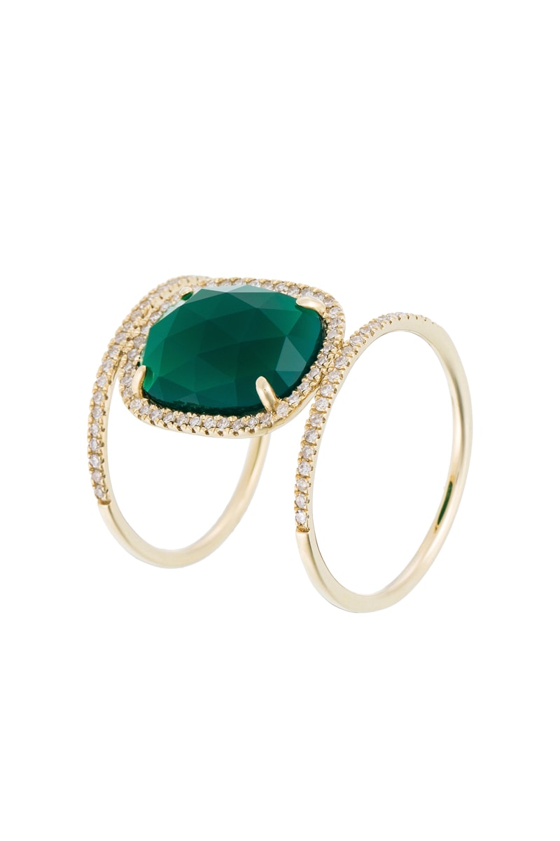 Bague en or jaune sertie de 82 diamants et d'une agate.