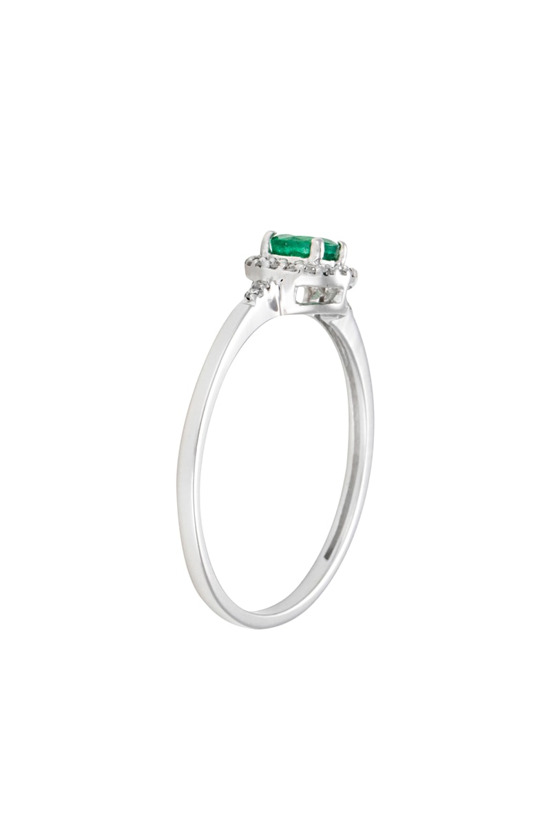 Matière : or blanc 375 / 1000, diamants 0,09 carat/22 et émeraude 0,25 carat/1