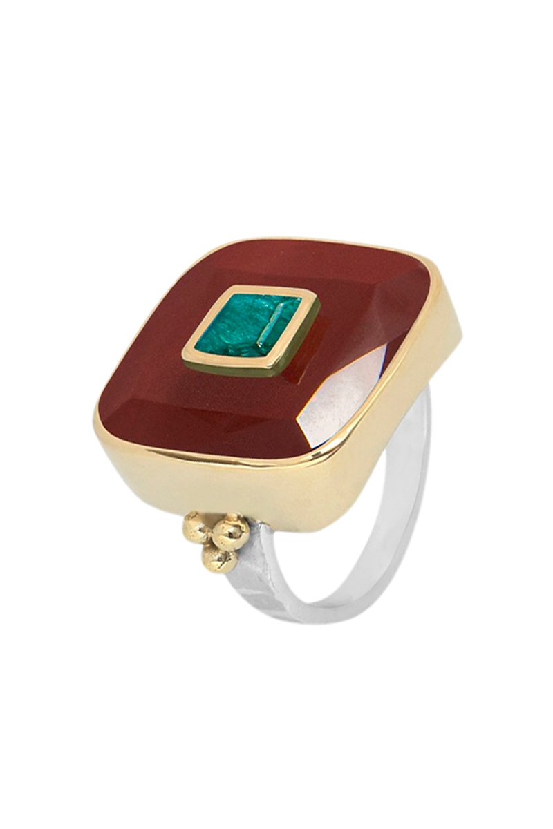 Bague en argent sertie d'un jaspe et d'une sillimanite.