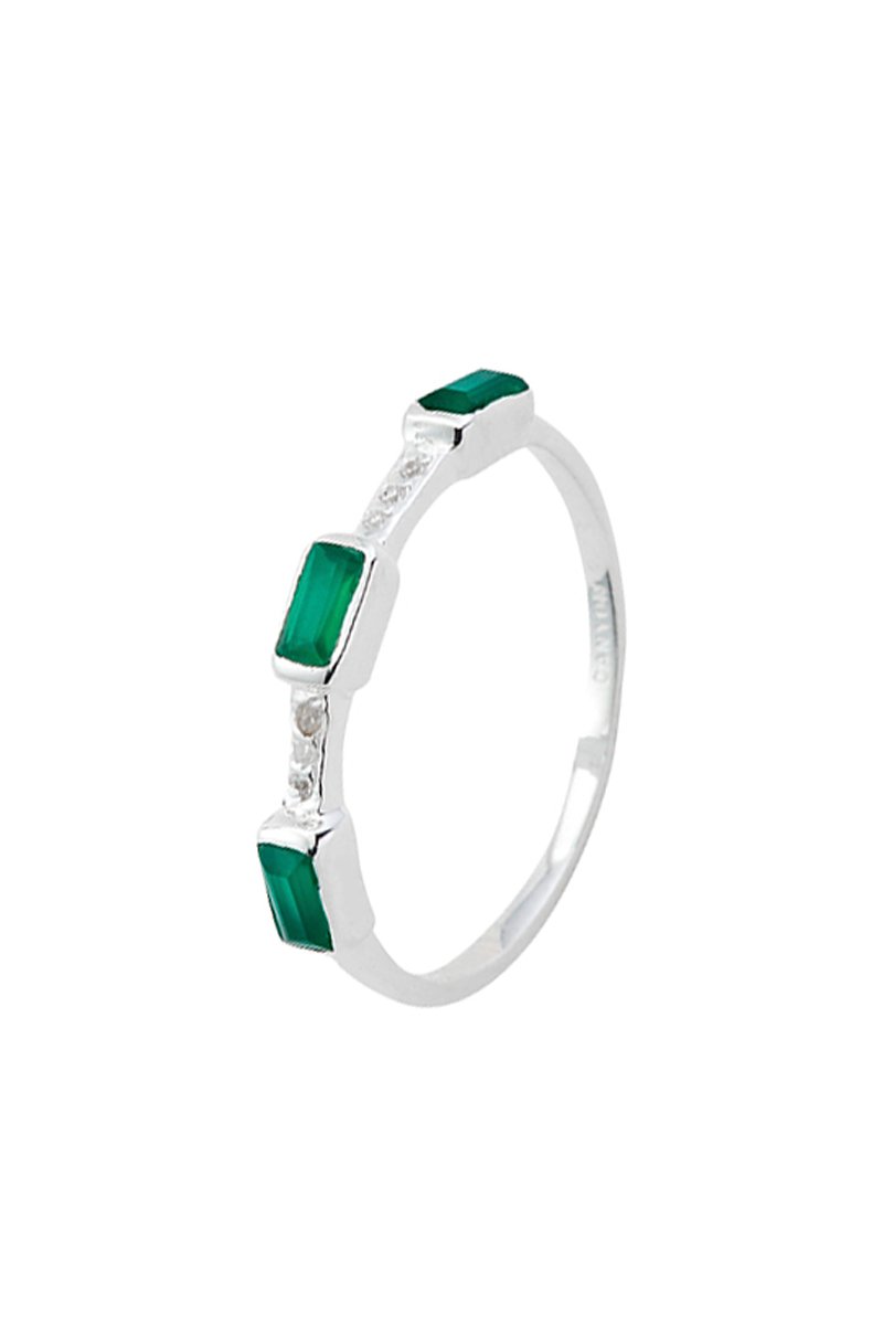 Bague en argent sertie de 3 onyx et d’oxydes de zirconium.