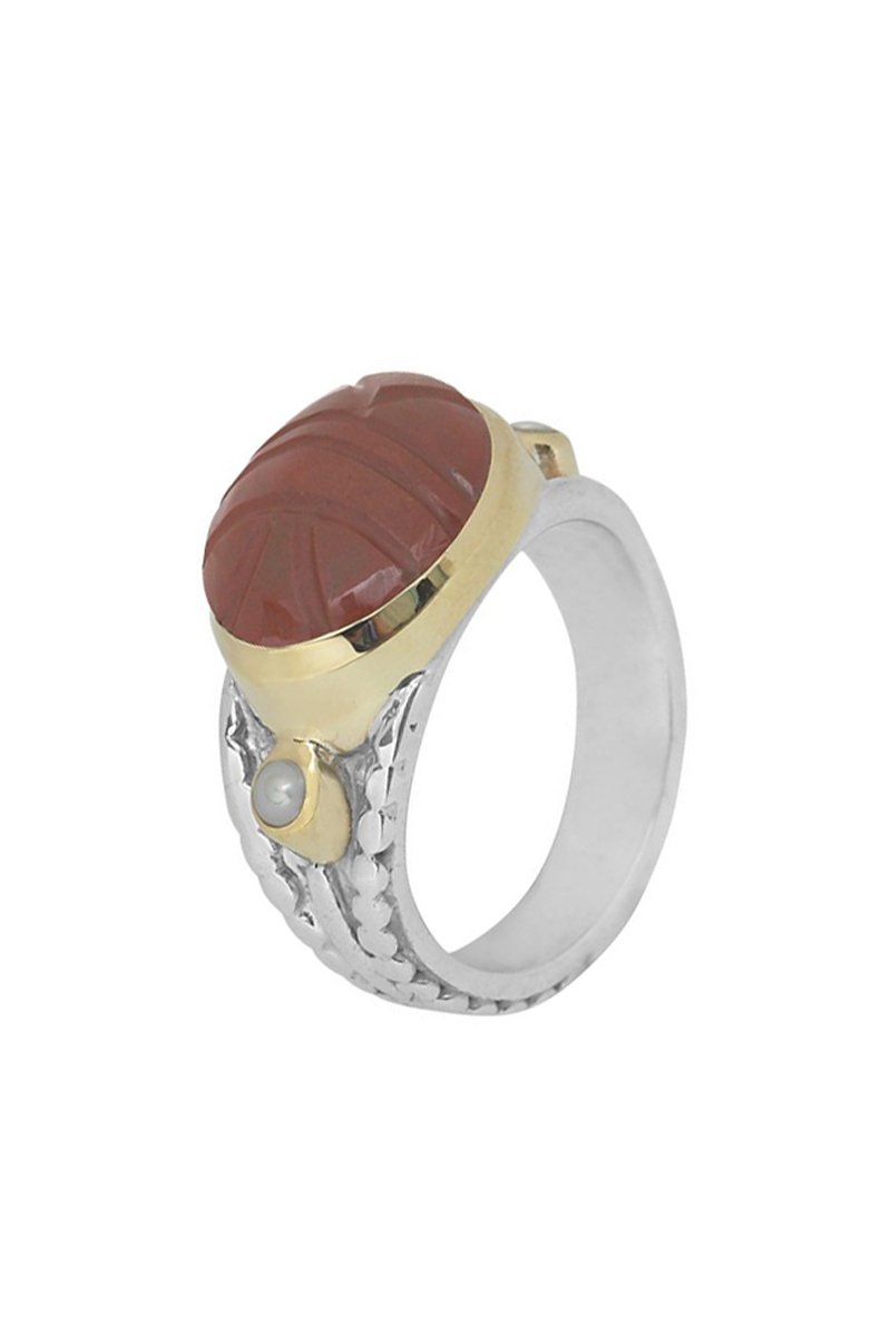Bague en argent sertie de jaspe et de 2 perles d'imitation.