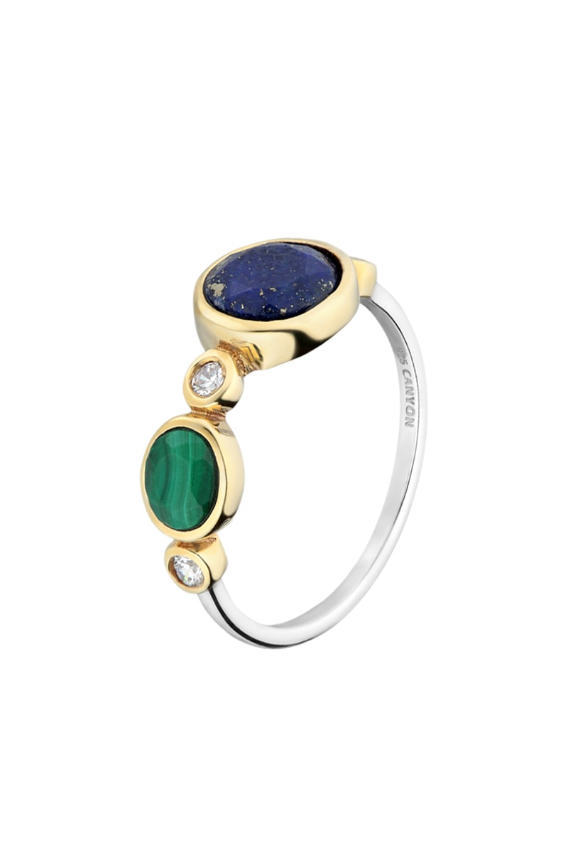 Bague en argent sertie d’un lapis-lazuli, d'une malachite et de 3 oxydes de zirconium.