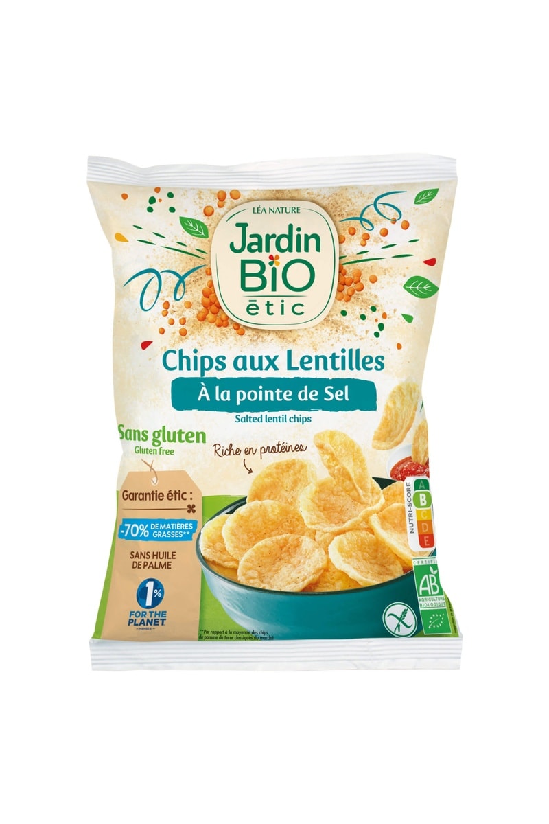 Chips de lentilles à la pointe de sel bio.