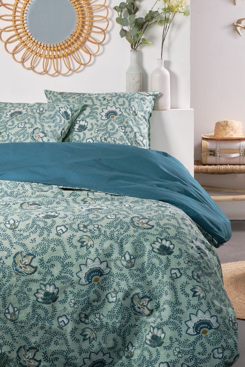 Parure de couette réversible en coton - 57 fils/cm² - Bleu