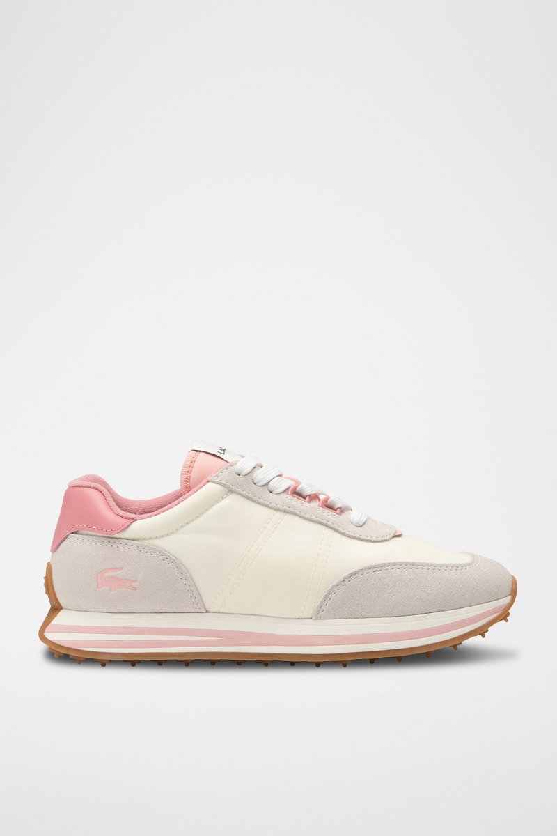 Baskets en cuir L-Spin - Ecru et rose