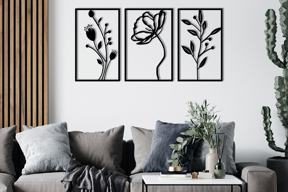 Décoration murale Flowers - 70 x 39 cm - Noir