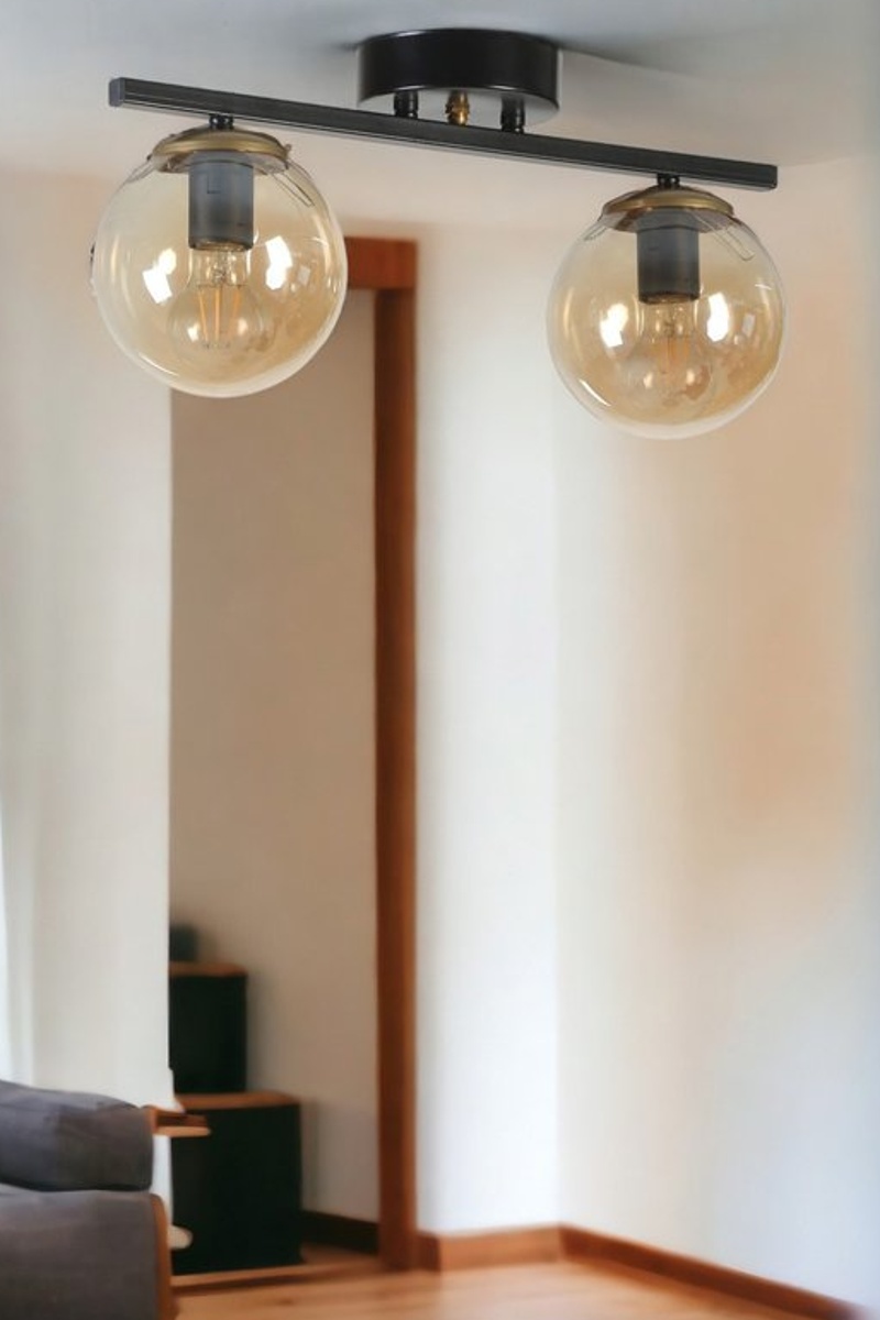 Plafonnier Yeni Can 2 - Noir et doré - 2 x 60 W