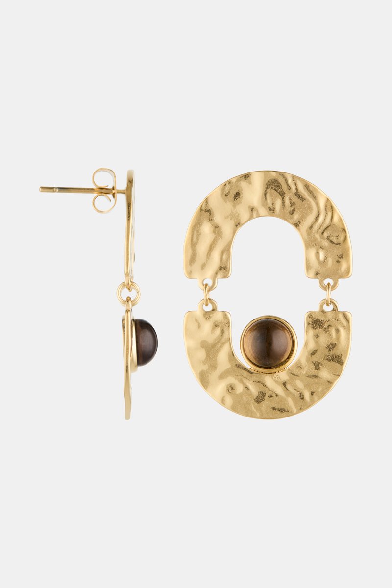 Boucles d’oreilles pendantes serties d’un quartz fumé.