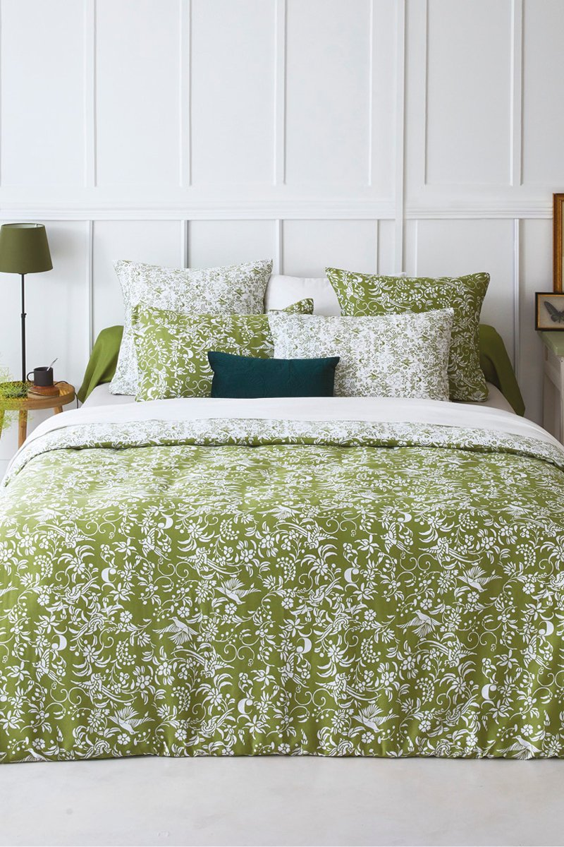 Parure de couette en satin de coton 80 fils/cm² Birds - Olive