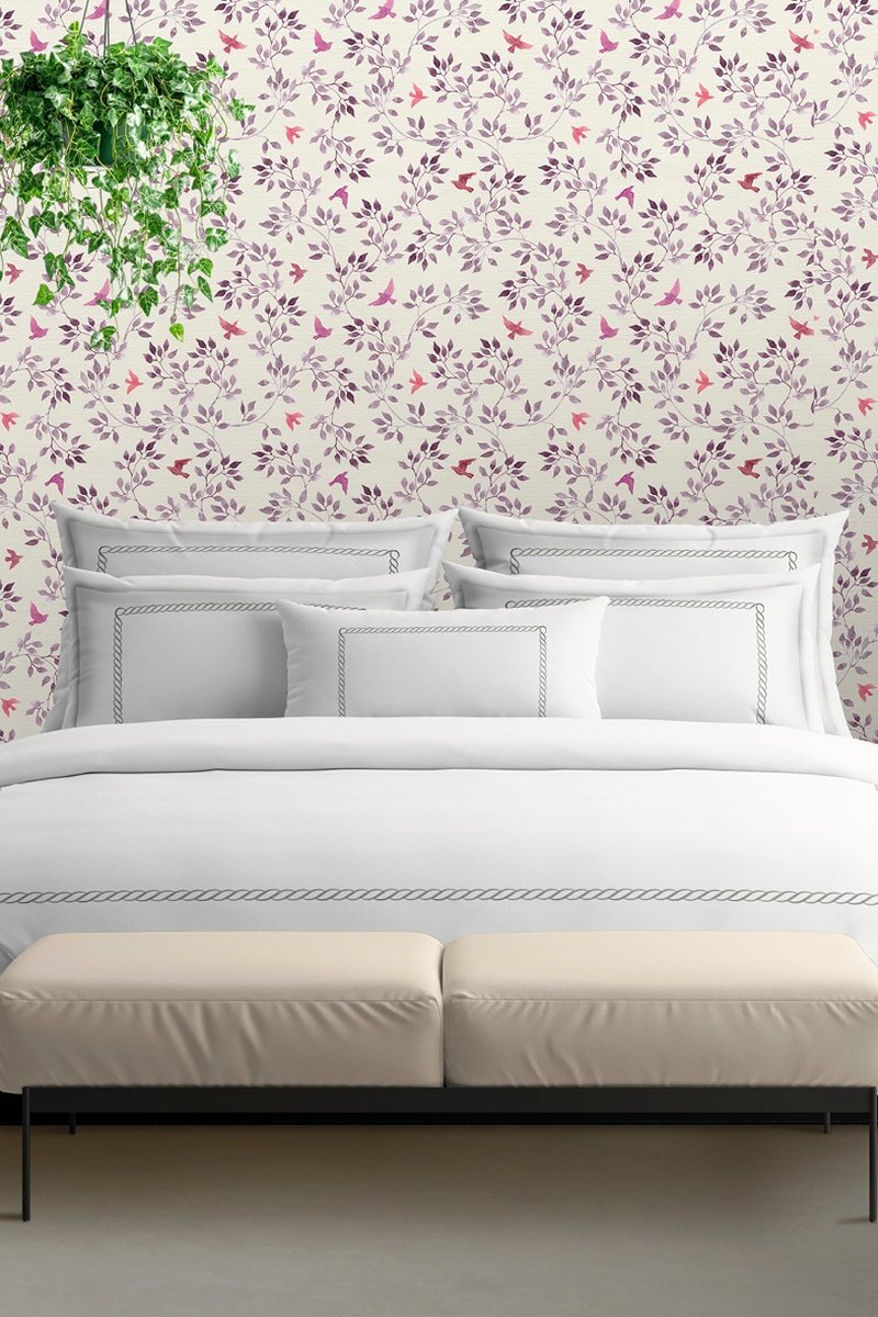Parure de couette en satin de coton 80 fils/cm² Perle enchantée - Blanc et gris