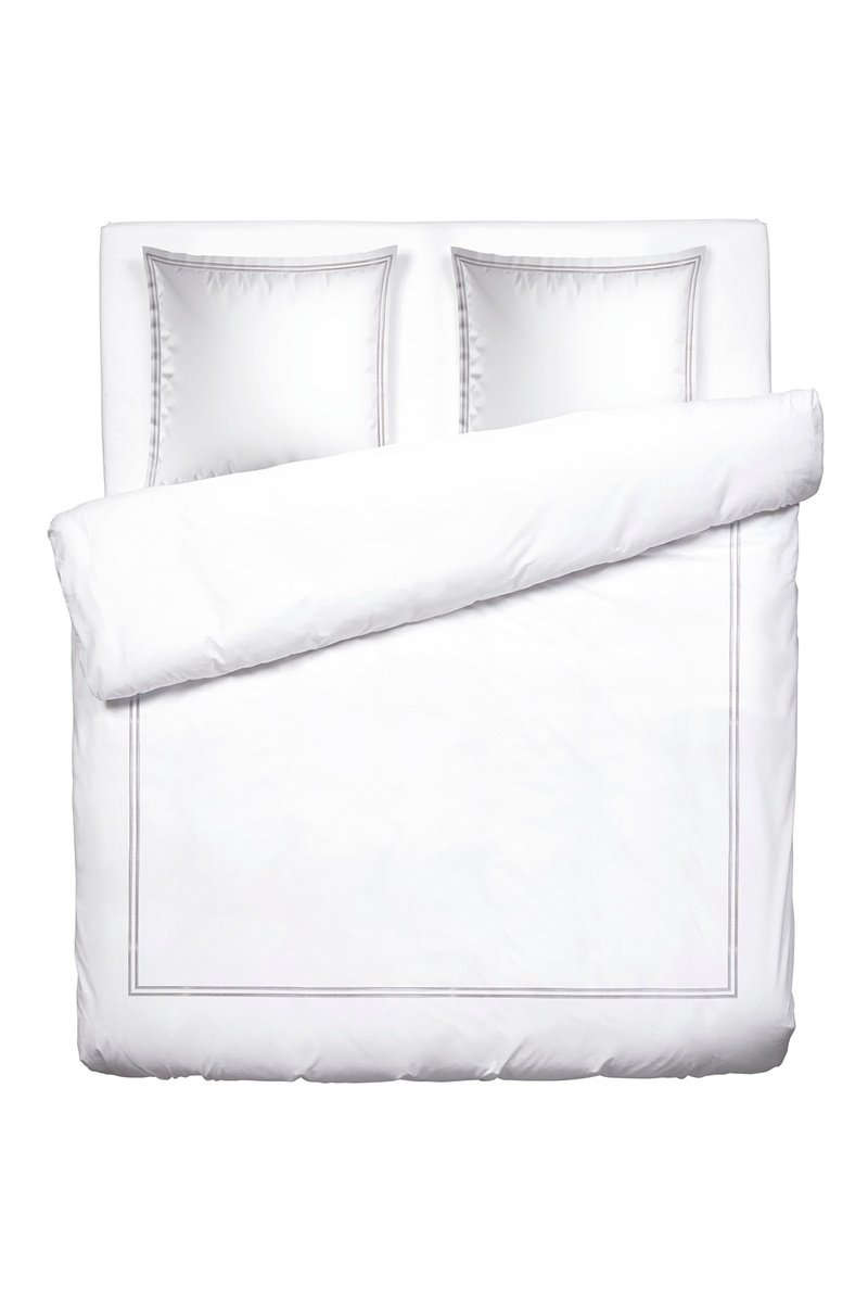 Parure de couette en satin de coton 80 fils/cm² La Rochelle - Gris clair et blanc