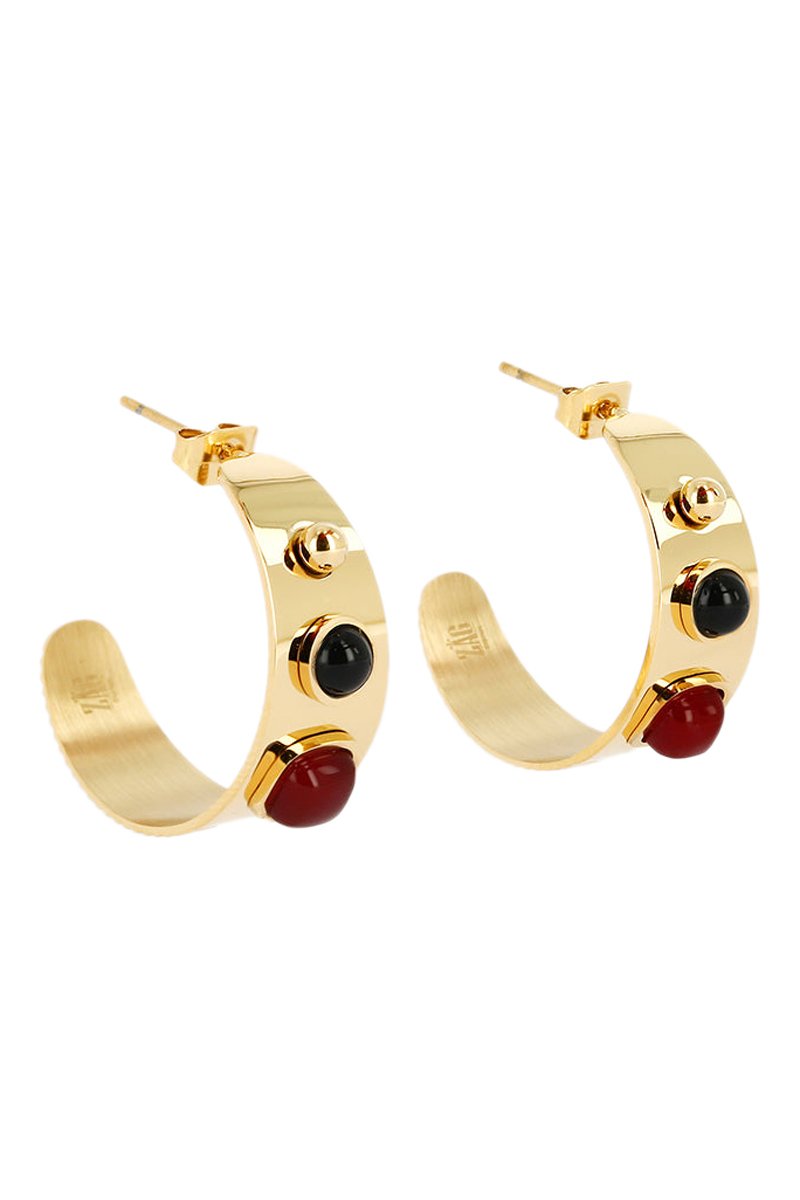 Créoles serties d’un cornaline et cristaux.