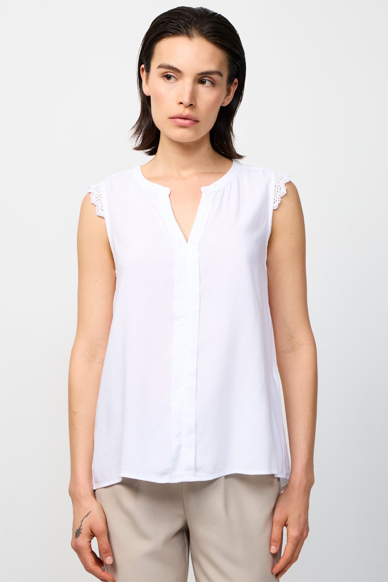 Top à mancherons en dentelle.
