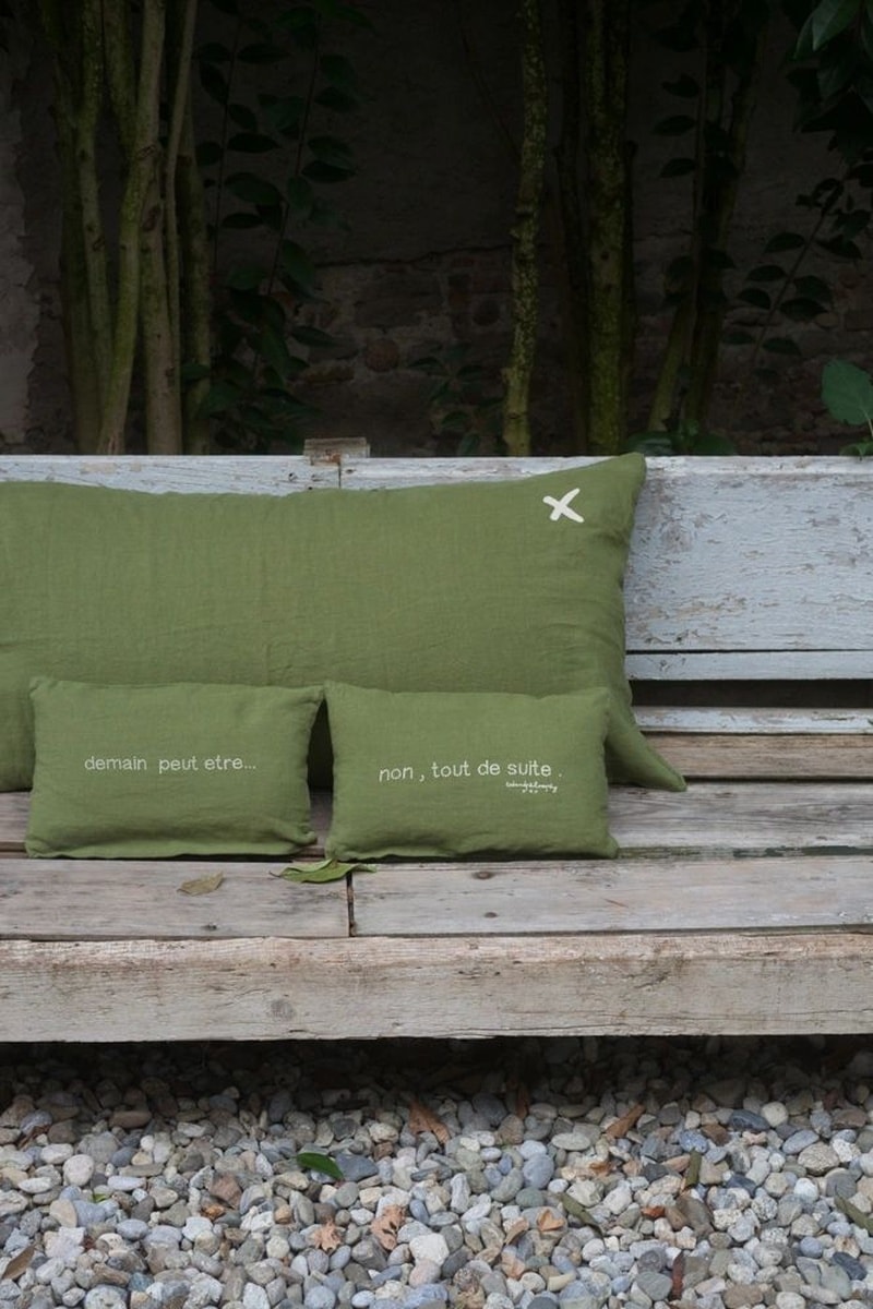 Apportez une touche de légèreté et de charme à votre intérieur avec le lot de 2 coussins SWITCH, coloris Kaki. Leur message "Demain peut-être... non, tout de suite" allie un brin d’humour à une déco élégante. Confectionnés en lin lavé 100%, ces coussins offrent une texture douce et agréable, tandis que leur finition portefeuille simple leur apporte une belle simplicité.