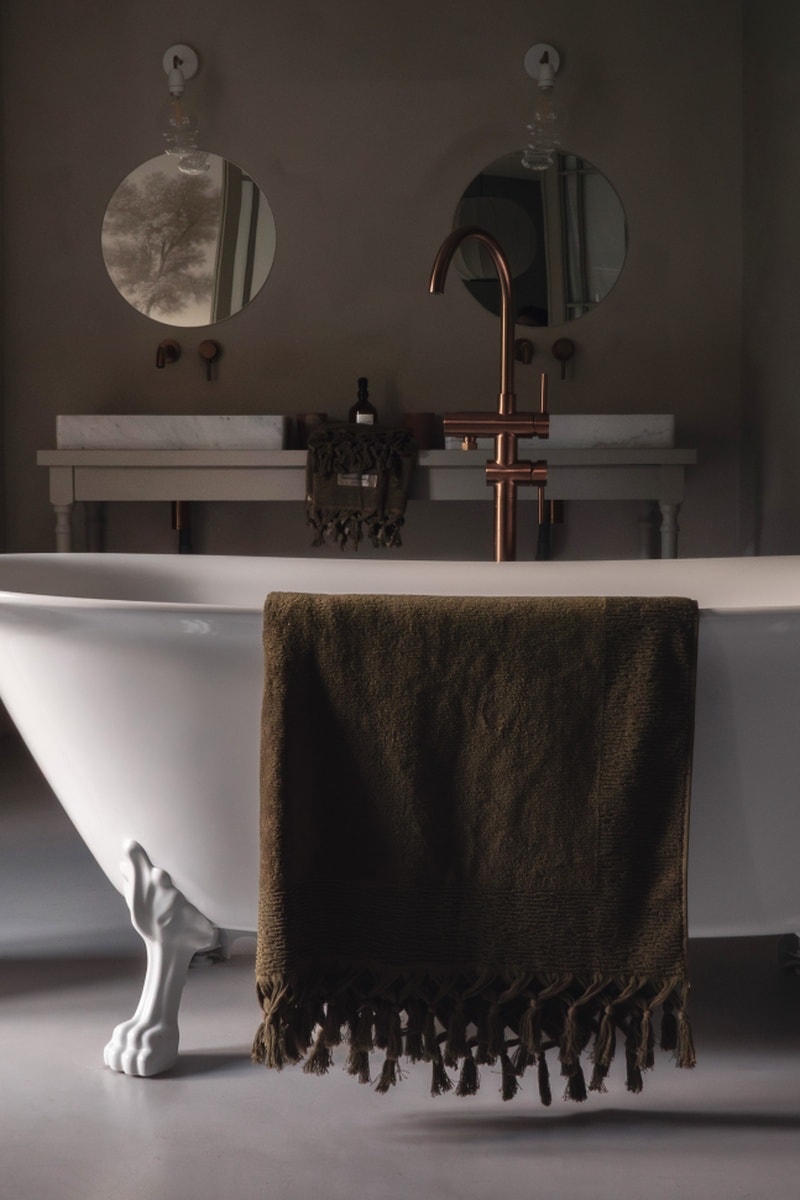 La serviette ULYSSE3, coloris Army, est réalisée en 100% coton. Son cadre en éponge et son intérieur au toucher velours ajoutent une touche de luxe à votre quotidien. Les finitions frangées et l'étiquette "Bed and Philosophy" accentuent son côté raffiné. Avec ses dimensions de 100 x 180 cm, elle est idéale pour envelopper votre corps dans une douceur infinie. Facile d'entretien, elle se lave à 40° pour conserver sa qualité.