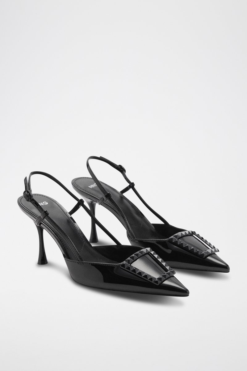 Chaussures vernies talon ouvertes à l'arrière.