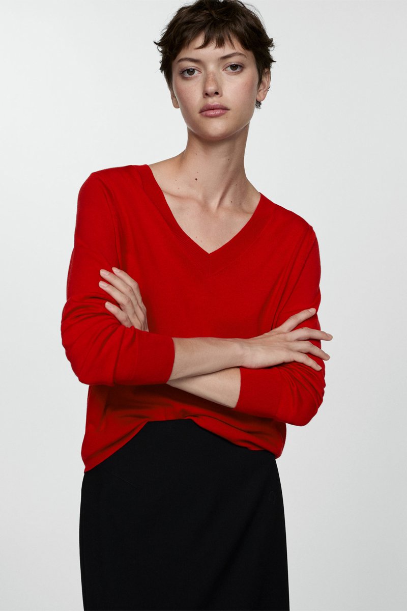Pull-over maille fine col V - Rouge