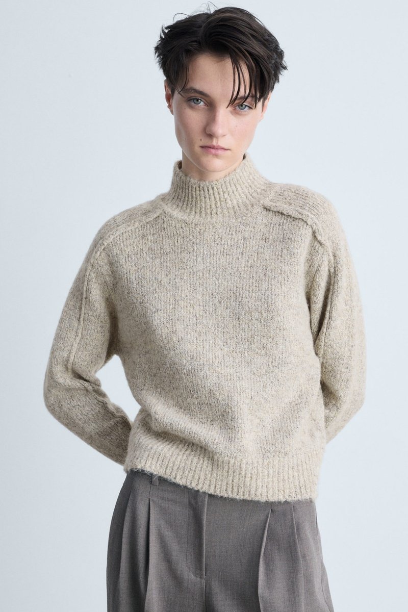 Pull-over maille col montant - Sable