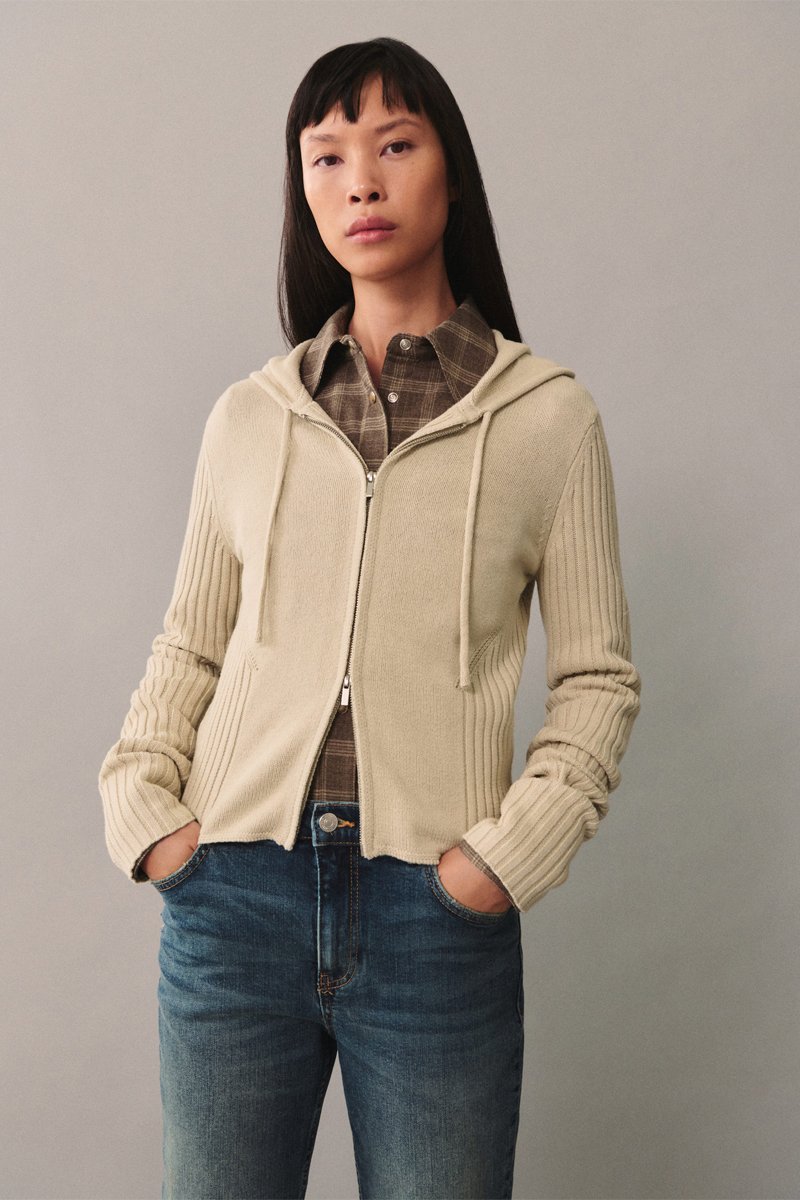 Cardigan à capuche zippé - Écru