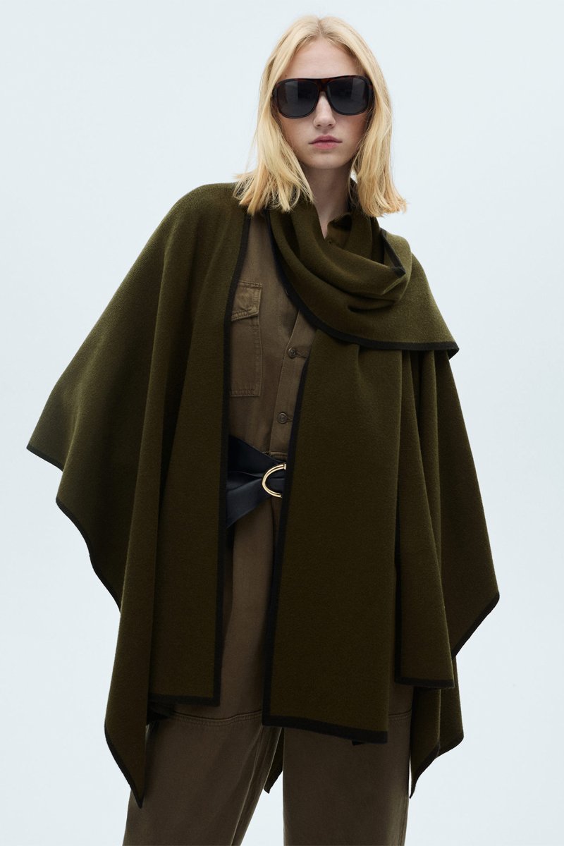Cape maille liseré contrastant - Kaki