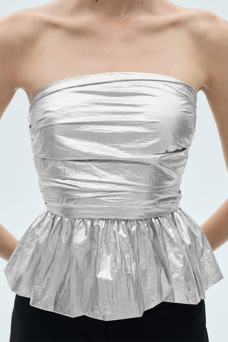 Top métallisé péplum - Argenté