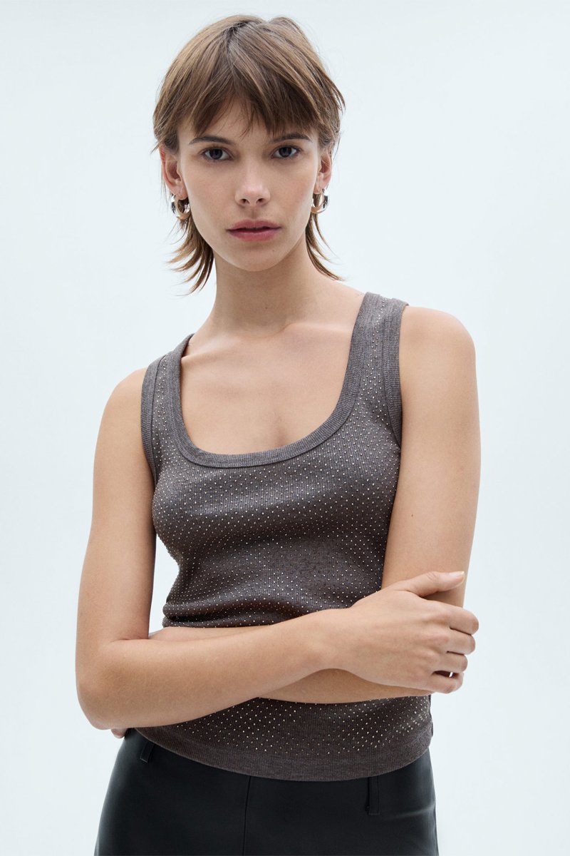 Top bretelles à sequins - Gris