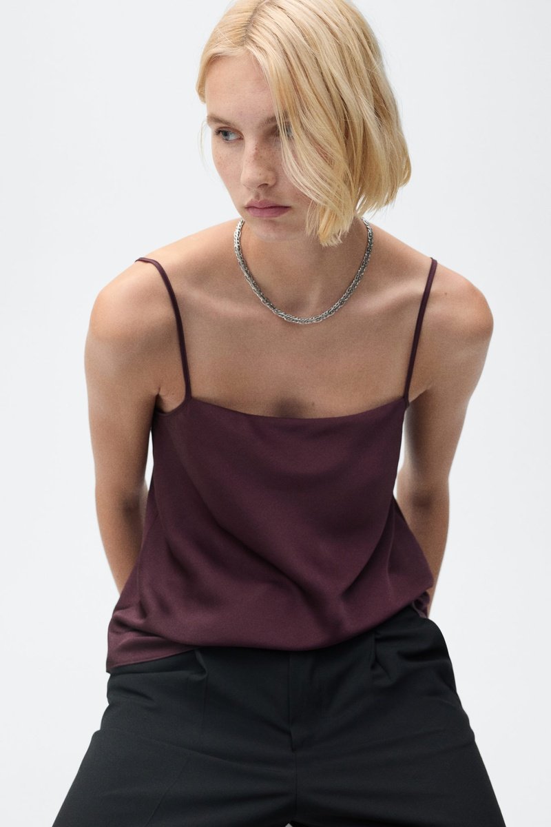 Top satiné bretelles fines - Lie-de-vin