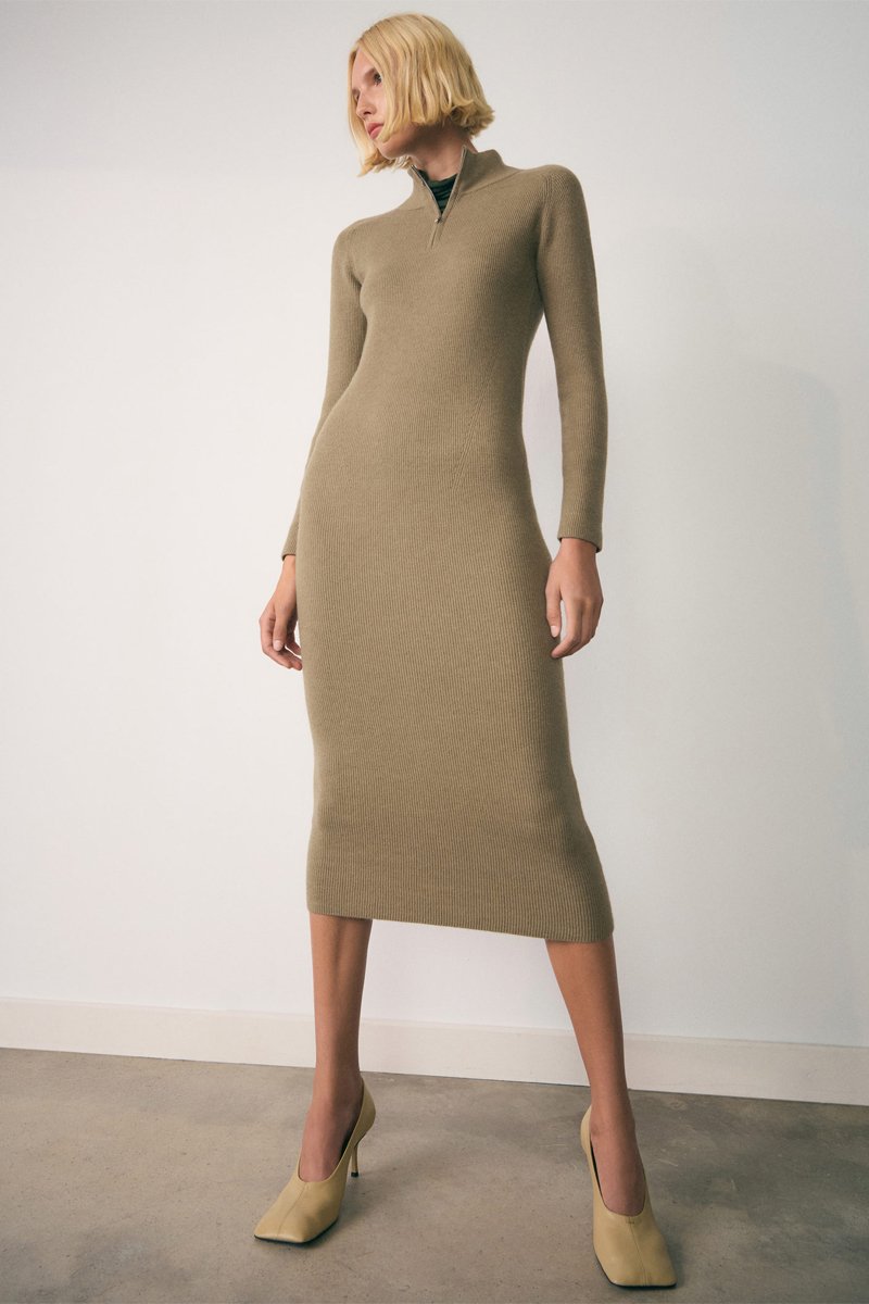 Robe maille zippée - Kaki