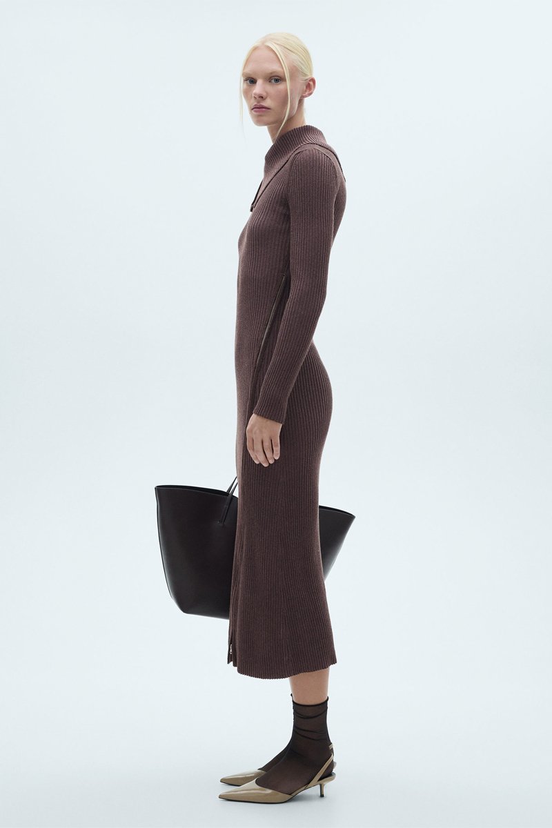 Robe maille côtelée col revers.