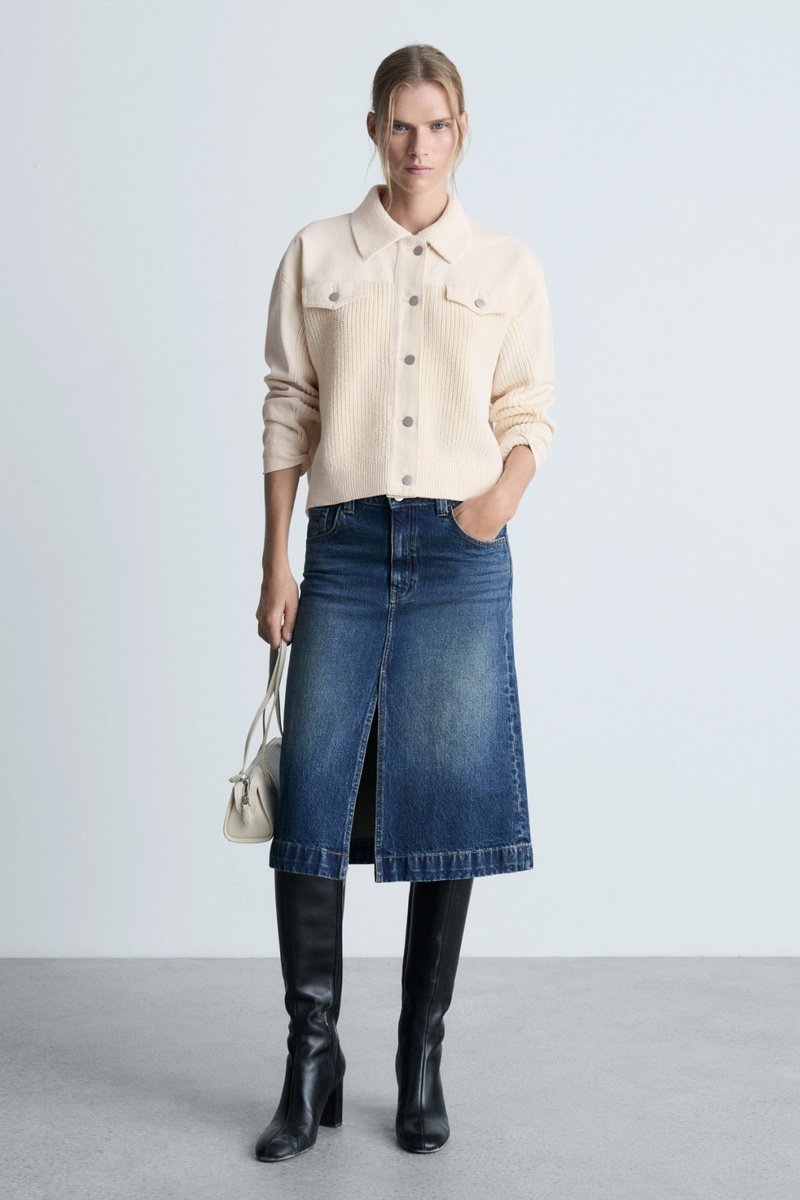 Blouson combiné tricot - Ecru