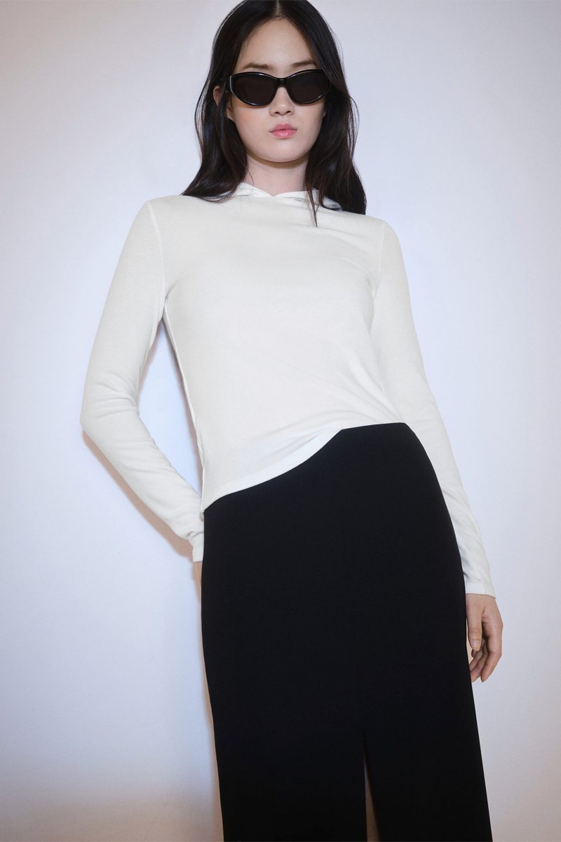 T-shirt manches longues capuche - Blanc cassé