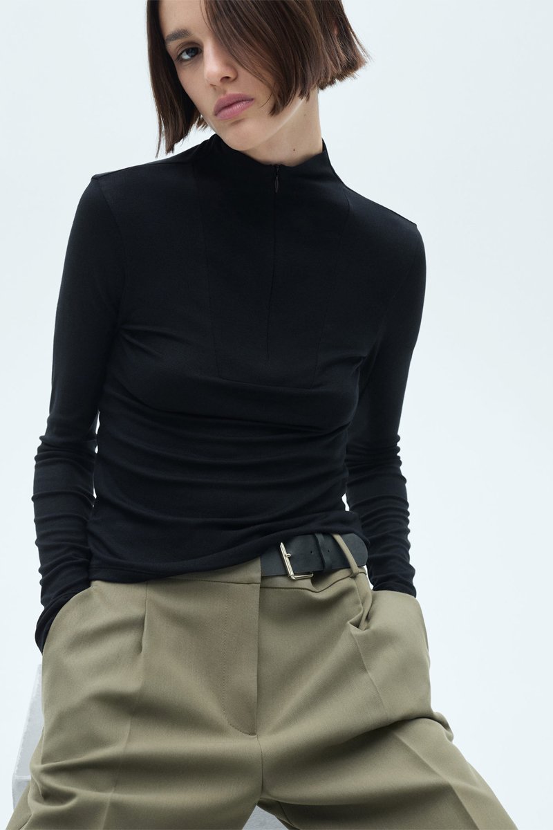 T-shirt col montant fermeture Éclair - Noir
