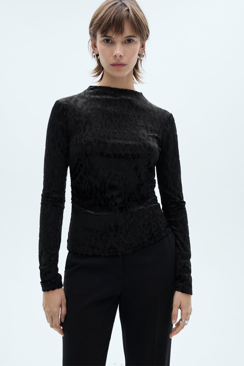 T-shirt léopard manches longues - Noir et gris
