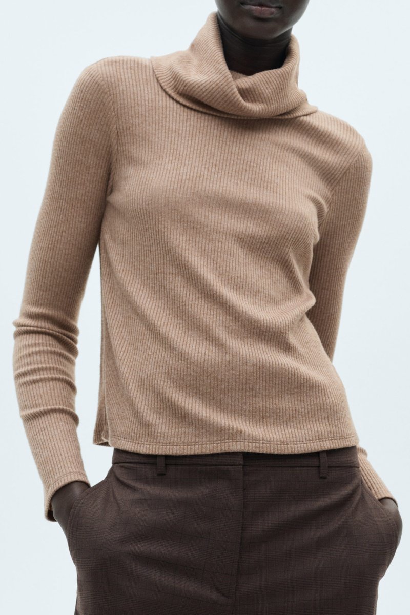 T-shirt côtelé col roulé - Marron
