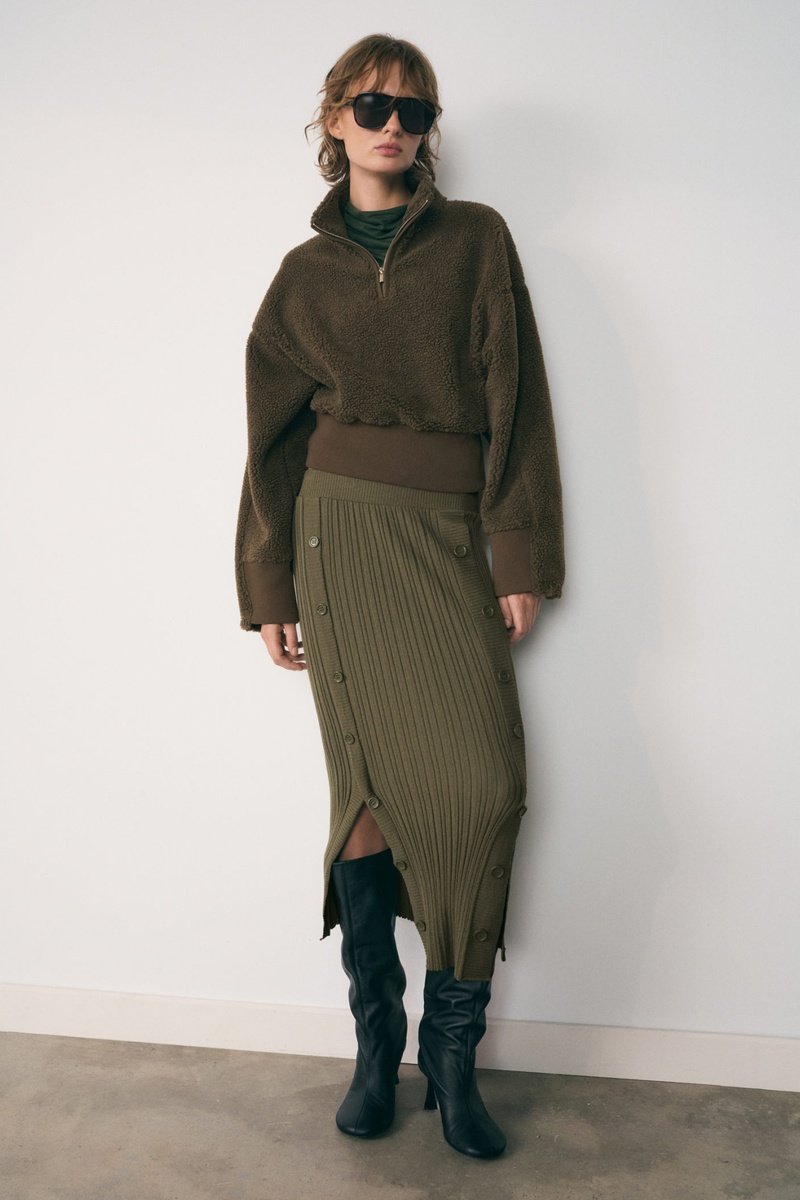 Sweat-shirt effet moutonné fermeture éclair - Kaki