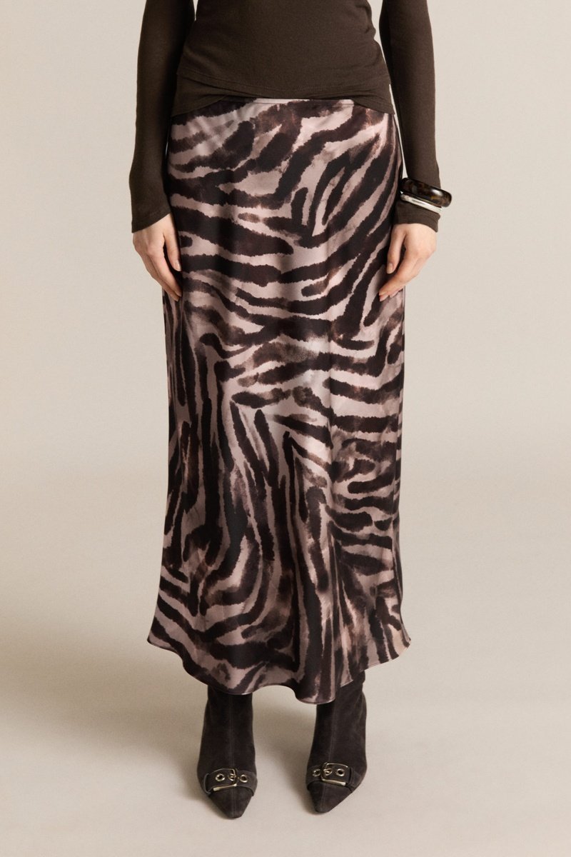 Jupe longue satinée zèbre - Marron