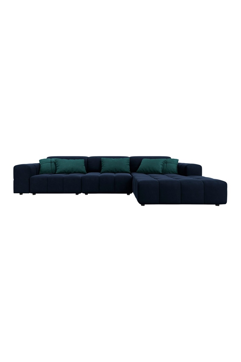 Canapé d'angle droit Luc - Bleu foncé - 4 places - Toucher velours