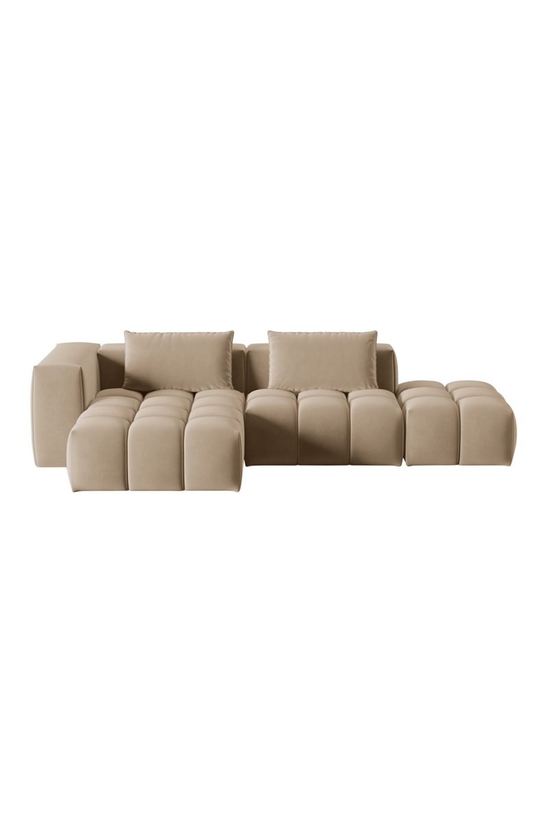 Canapé d'angle gauche modulaire Lorella - Sable - 4 places - Revêtement en velours