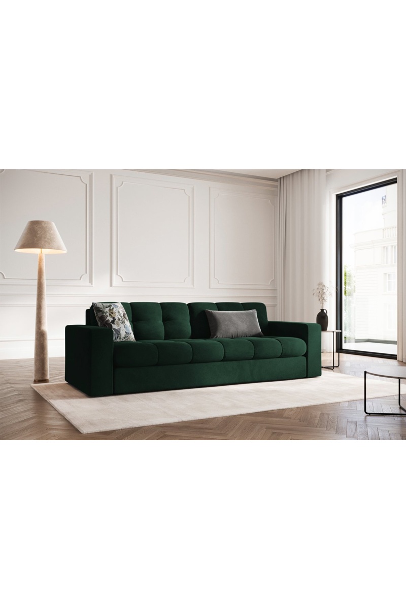 Canapé Yohan - Vert bouteille - 3 places - En tissu synthétique - Toucher velours