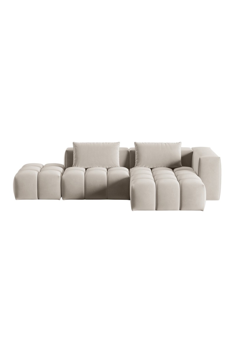 Canapé d'angle droit modulaire Lorella - Beige clair - 4 places - Revêtement en velours