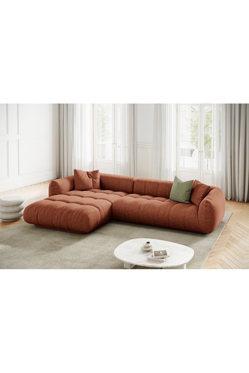 Canapé d’angle gauche modulaire Julia - Rouge brique - 3 places - En tissu structurel