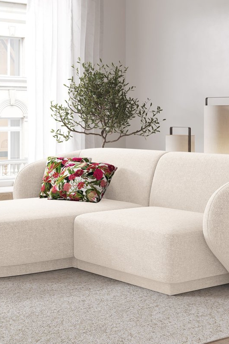Canapé d'angle gauche modulaire Lionel - Beige clair - 3 places - Toucher tissu chenille