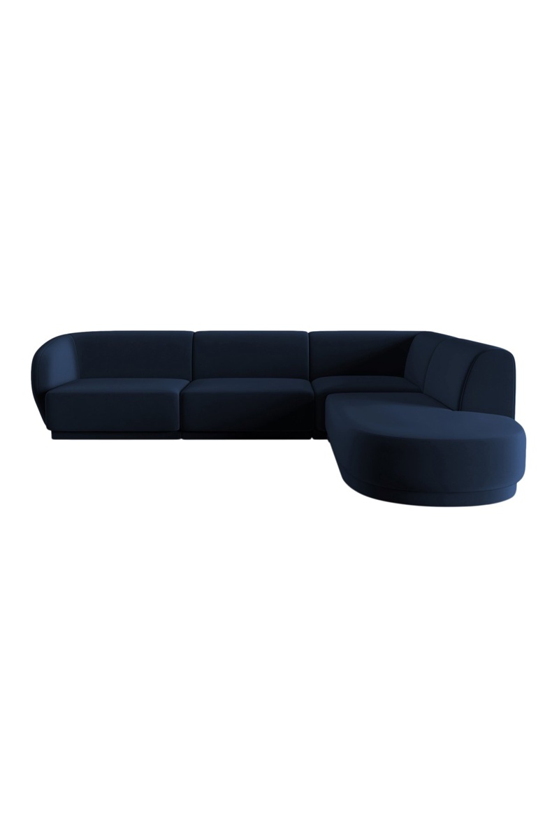 Canapé d’angle droit Lionel - Bleu roi - 5 places - En tissu velours