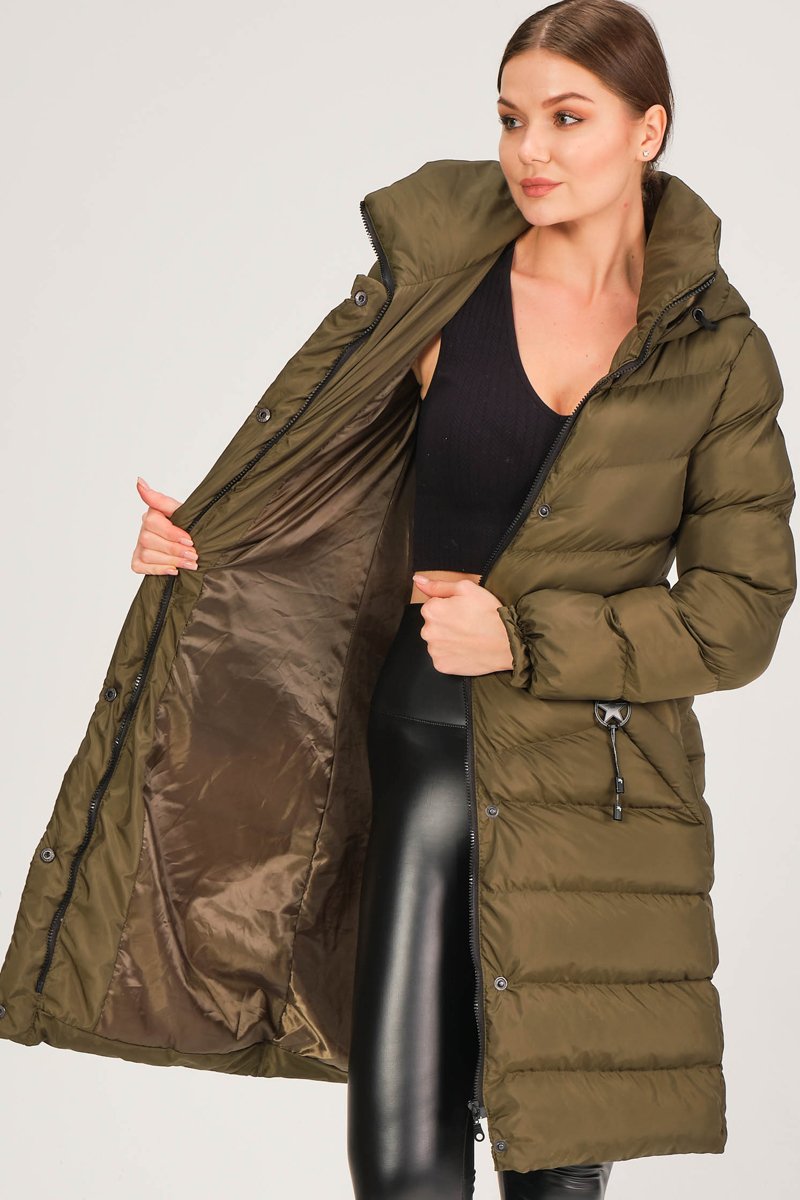 Doudoune longue à capuche - Kaki