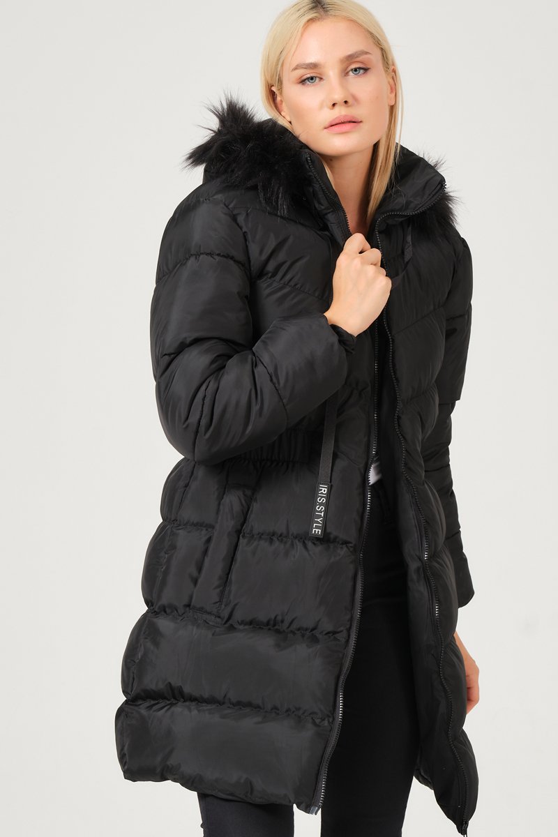 Doudoune longue à capuche - Noir