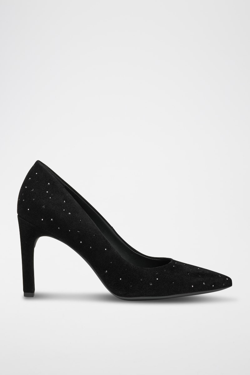 Escarpins en cuir de chèvre nubuck à strass.