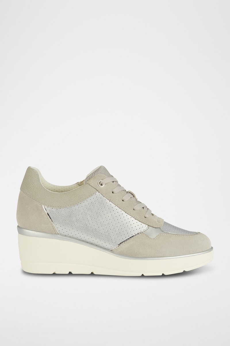 Baskets compensées en cuir de veau nubuck.